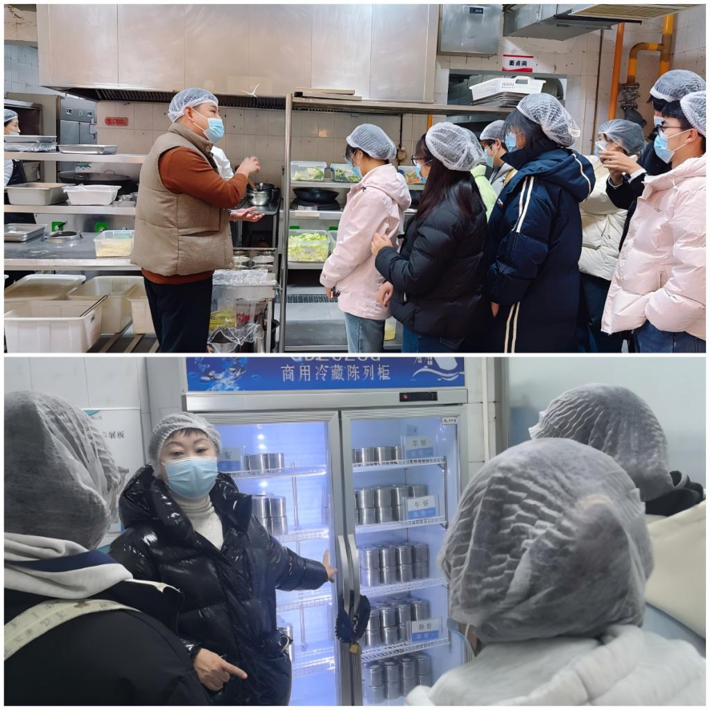 活动当日,代表们在饮食中心工作人员的引导和讲解下,依次参观了主食仓库、副食库、蔬菜加工间、肉类加工间、烹饪操作间、餐具洗消间及食品留样柜等关键区域。工作人员详细介绍了原材料采购验收标准、仓储管理规范、食品加工操作流程、餐具清洗消毒程序以及日常食品安全管控措施。参观过程中,代表们对食堂整洁有序的环境、严格规范的标识管理、现代化的厨房设备以及工作人员严谨地操作表现出浓厚兴趣,并不时就关心的食材来源、菜品营养搭配、剩菜处理方式等问题与食堂管理人员进行交流。